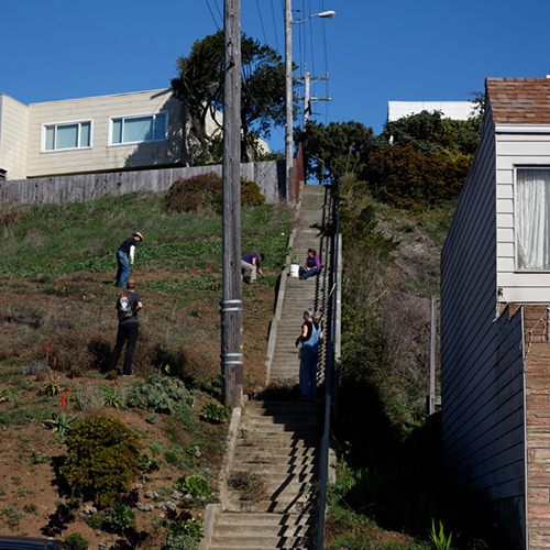The group of involved neighbors organized meetings with the students and invited neighbors by distributing flyers to all surrounding blocks. The group continued to grow in size to what it is today, a group of about 120 supporters. Starting in September of 2008, the group met on the first Saturday of each month to clean up the hillside. They held several large community meetings to get input on the design, and to address any concerns from the neighborhood. A final set of drawings was settled on in March of 2010.