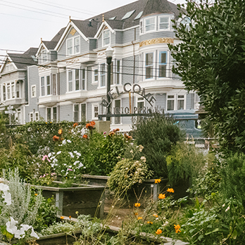Alice Marble is perched at the top of Lombard street’s iconic crooked block and features a panoramic view of San Francisco’s northern coast.
