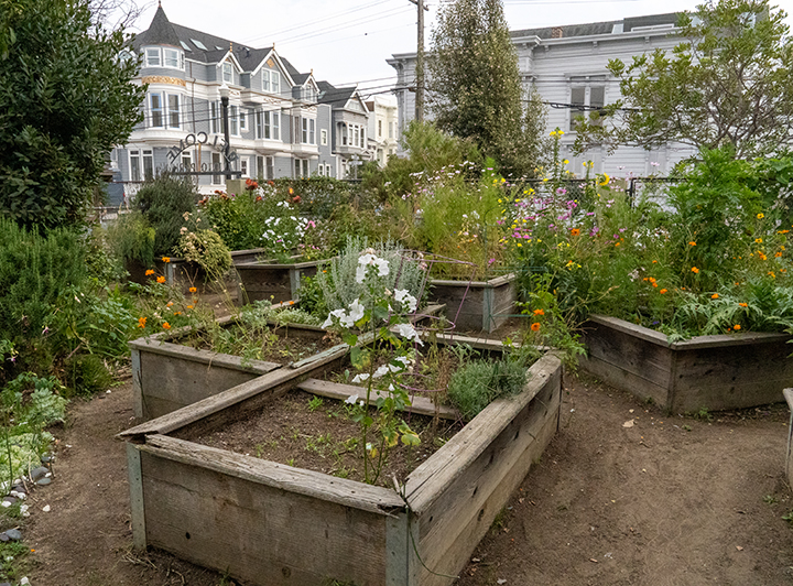 Alioto Mini Park is a small park in the Mission with a grassy area, gazebo, community gardens, and a play structure.
