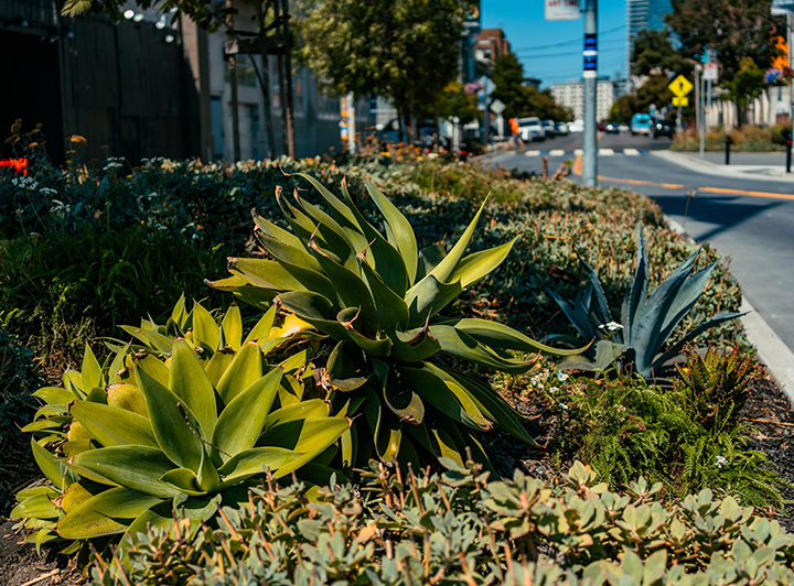 Eagle Plaza will transform a 13,000 square foot pedestrian-oriented plaza, replacing asphalt and concrete with trees, vegetation, seating, and the ability to close the plaza to cars for community events.