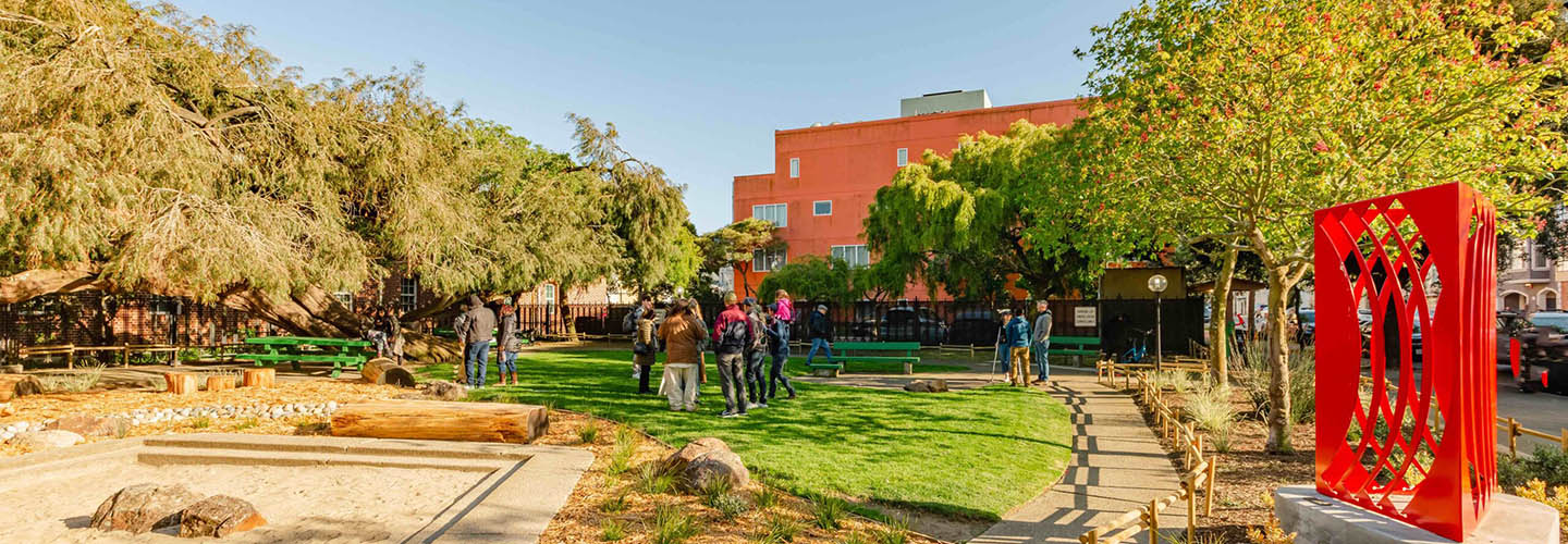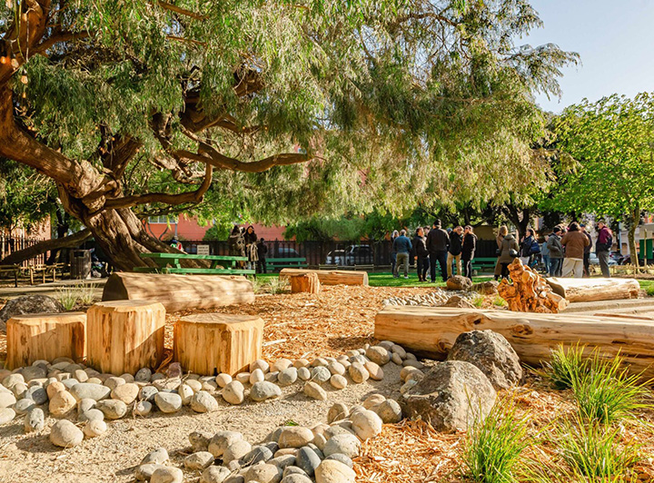 In collaboration with SF Rec & Park, Muriel Leff, and the local community, SF Parks Alliance completed the renovation of this mini park in spring 2023 featuring a new nature play area, boulders, dry creek bed, picnic tables, and plantings.