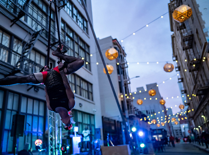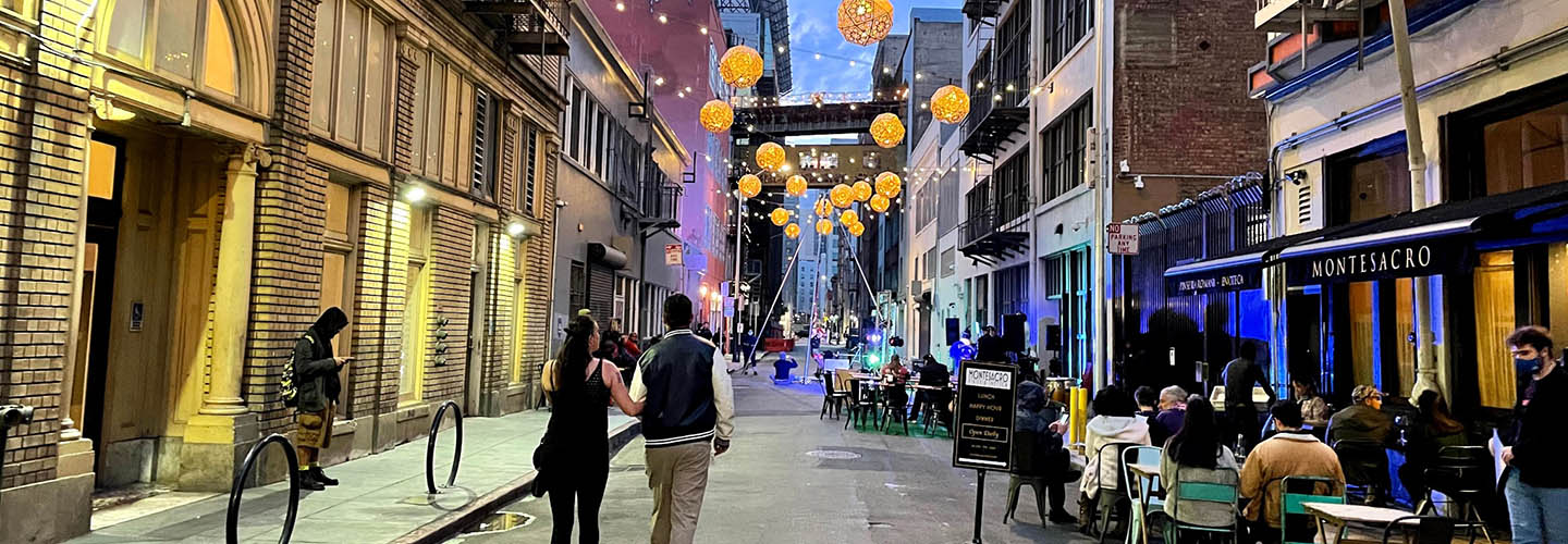 SkyBridge on Stevenson is a community-led effort to revitalize the 500 block of Stevenson Street in SoMa, transforming the alley into a vibrant hub of arts, commerce, and activity.