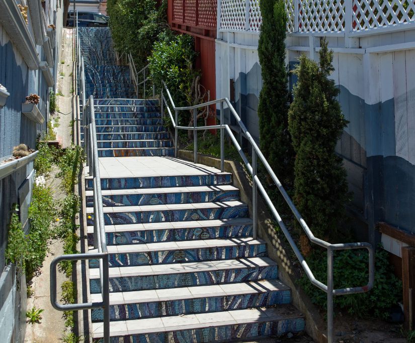 During the long ride to downtown, I would think about the trash and vandalism and wonder what could be done about it. I thought about the murals in the Mission and how those aren’t typically covered in graffiti. I’d heard about mosaic stairs but had no idea how to go about it.