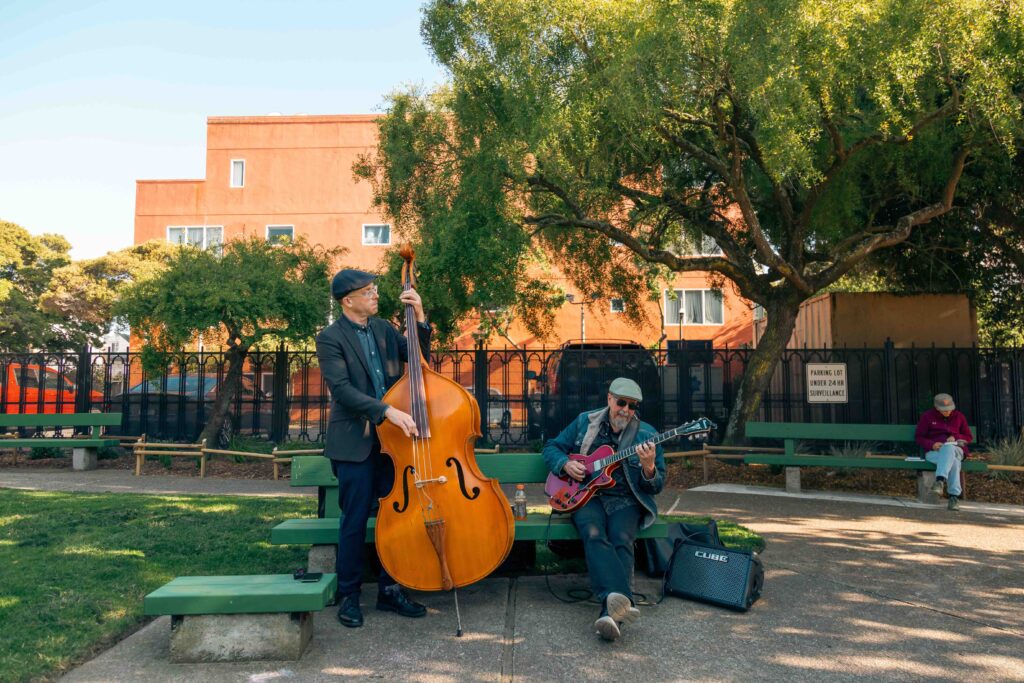 Last February, we added a new nature play area, boulders, dry creek bed, and picnic tables to Muriel Leff Mini Park. In March, local residents joined us to beautify the Inner Richmond park at a community planting day. We celebrated the park’s transformation with a community ribbon cutting on April 3, which was also the launch of the second year of our free Jazz Thursdays concert series held through the spring and summer.