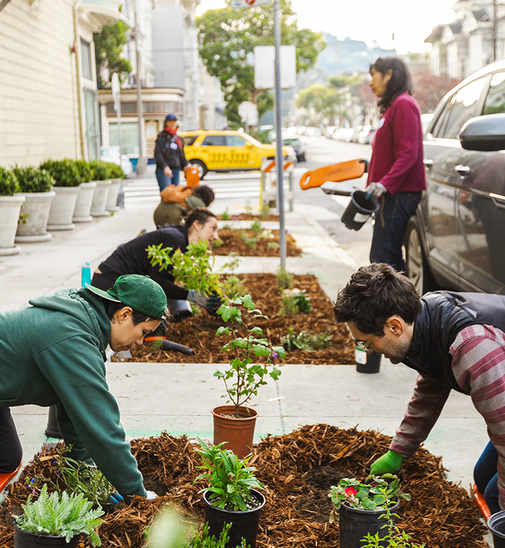 Take care of your neighborhood and beautify your shared spaces by adding trees, potted plants or a garden bed to your sidewalk.